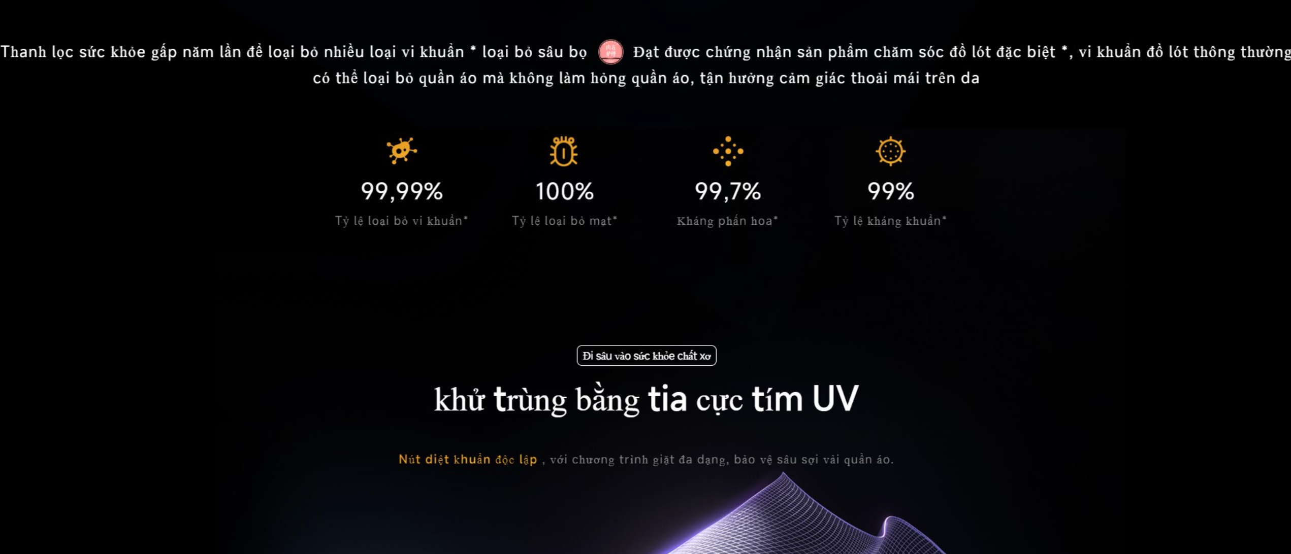 Máy giặt sấy thông minh Xiaomi Mijia XM21 15kg còn có chức năng năng diệt khuẩn kích hoạt đèn UV diệt khuẩn quần áo, xử lý ion bạc và giặt ở nhiệt độ cao để tiêu diệt mầm bệnh. Máy còn có chức năng tự làm sạch ở 95°C.