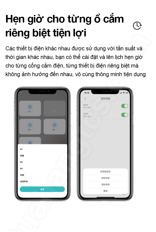 Sản phẩm được trang bị 1 công tắc tổng và 4 công tắc nhánh hoạt động độc lập với nhau có thể bật tắt nguồn bất cứ phích cắm nào nếu muốn sử dụng. Các thiết bị điện khác nhau thường có thời gian sử dụng và tần suất hoạt động khác nhau, bạn có thể lên lịch hẹn giờ cho từng ổ cắm điện Gosund CP5, vô cùng tiện dụng mà không sợ các thiết bị ảnh hưởng tới nhau.