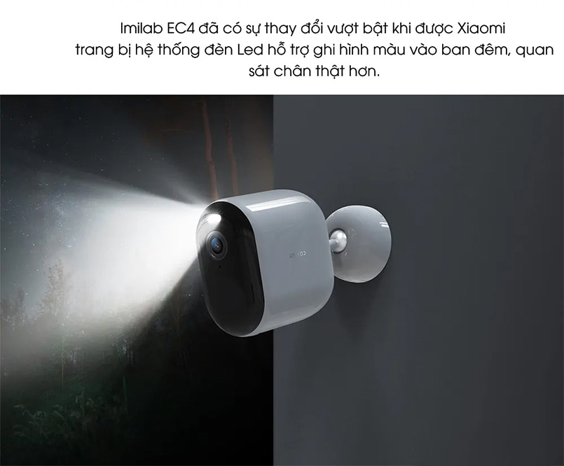 Các phiên bản trước chỉ cho phép ghi hình trắng đen vào ban đêm thì phiên bản trên camera ngoài trời Xiaomi Imilab EC4 CMSXJ31A 2.5k đã có sự thay đổi vượt trội khi được Xiaomi hỗ trợ thêm hệ thống đèn Led giúp ghi hình màu vào ban đêm, cho người dùng quan sát chân thật hơn. Bên cạnh đó, bạn có thể bật thủ công tính năng ghi hình này khi thiết bị được kết nối với App hoặc camera sẽ tự động hoạt động khi phát hiện ra những chuyển động bất thường.