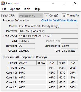 - Core Temp: Core Temp cung cấp thông tin chi tiết về nhiệt độ của từng lõi CPU, giúp bạn dễ dàng theo dõi tình trạng máy.