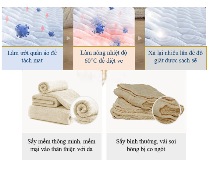 Việc dòng nước mạnh ở nhiệt độ cao lên tới 95 độ sẽ rửa sạch các thành phần trong và ngoài lồng giặt giúp cho lồng giặt luôn sạch sẽ, không mùi hôi giúp quần áo luôn được thơm tho sau mỗi lần giặt.