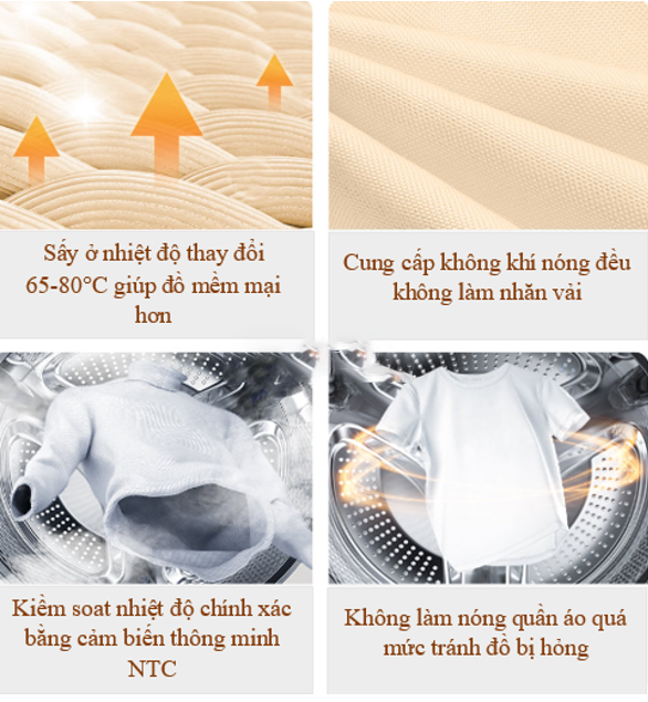 Máy giặt sấy được tích hợp công nghệ giặt không khí không cần cấp nước. Máy có khả năng dùng hơi nóng để thẩm thấu qua từng sợi vải, giúp loại bỏ các tác nhân gây dị ứng bám trên quần áo một cách nhẹ nhàng cũng như khử trùng hiệu quả, bảo vệ tối ưu làn da của bạn. Với công nghệ Sấy mềm thông minh có cảm biến nhiệt độ dõi nhiệt độ và độ ẩm theo thời gian thực, quần áo có thể được sấy khô liên tục, quần áo trở nên mềm mại và thân thiện với da sau khi sấy.
