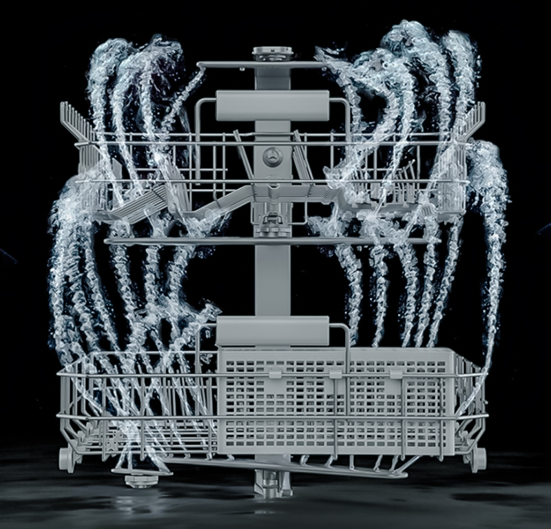Đối với việc làm sạch, thương hiệu tuyên bố có bốn vòi phun tạo ra 27 cột nước áp suất cao, nhiệt độ cao để làm sạch 720 độ. Làm sạch siêu sâu này rất thích hợp cho các món ăn bị dính dầu hoặc các chất khác khó làm sạch thông thường.