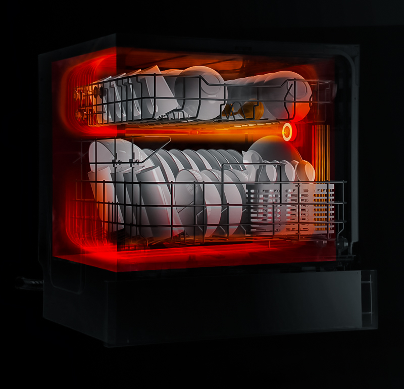 Nhiệt độ còn lại được ngưng tụ và không khí nóng PTC 80°C phối hợp với cửa đóng mở tự động để thúc đẩy quá trình trao đổi nhiệt. Và sự kết hợp này giúp cải thiện hiệu quả sấy khô và tăng cường hiệu quả sấy khô cho máy rửa chén 15 bộ Xiaomi Mijia S1.