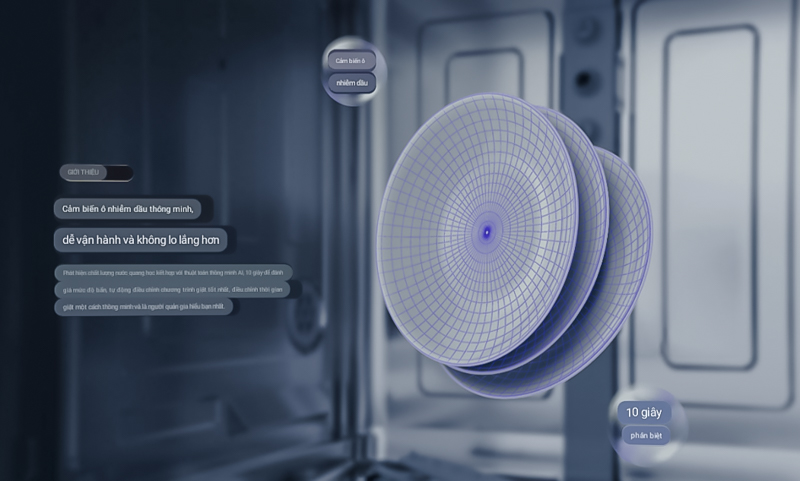 Có khả năng tự phát hiện mức độ bẩn/dầu mỡ => Tuỳ điều chỉnh thời rửa giặt thông minh