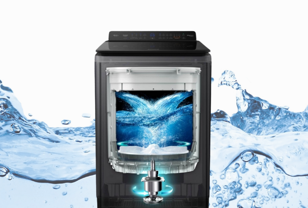 Máy giặt lồng đứng hoạt động nhờ mâm giặt hoặc động cơ phía dưới lồng giặt. Khi mâm giặt xoay, lồng giặt sẽ khuấy đều quần áo với chất tẩy, giúp đánh bay vết bẩn.
