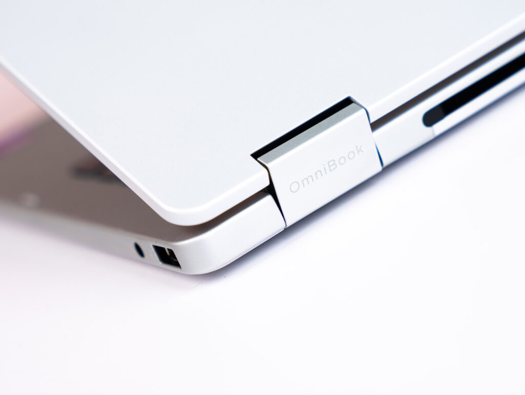 HP OmniBook 5 Flip ghi điểm với ngoại hình hiện đại, thanh thoát — trọng lượng chỉ khoảng 1.4kg, mỏng chỉ 16.9mm, dễ dàng mang theo khắp nơi.