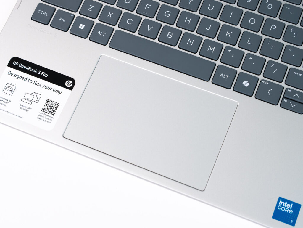 Touchpad của HP OmniBook 5 Flip được đánh giá cao nhờ bề mặt mịn giúp các thao tác vuốt, kéo và đa điểm diễn ra mượt mà, mang đến trải nghiệm sử dụng tự nhiên mà không cần đến chuột rời. Kích thước touchpad rộng rãi, kết hợp với khả năng phản hồi nhanh, đặc biệt phù hợp với các tác vụ văn phòng hoặc chỉnh sửa tài liệu khi di chuyển.