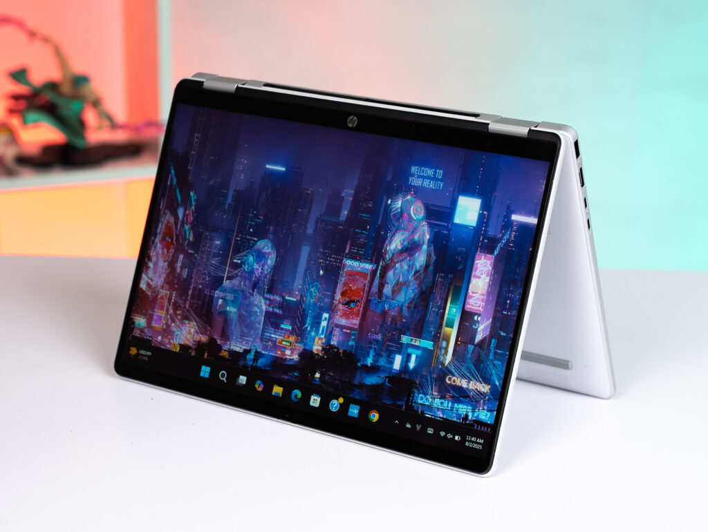 Bản lề xoay 360 độ giúp bạn linh hoạt chuyển đổi giữa các chế độ: Laptop – Lều – Trình chiếu – Tablet, phù hợp cho mọi tình huống: làm việc tại quán cà phê, họp nhóm, giảng dạy hay ghi chú nhanh.