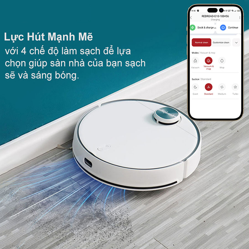 Robot hút bụi lau nhà Redroad G10 có thiết kế 2 trong 1 với khả năng vừa hút bụi vừa lau nhà tiện dụng, kích thước nhỏ gọn có thể dễ dàng đi qua gầm bàn, gầm ghế,... Kết hợp với lực hút mạnh mẽ lên đến 2800Pa cùng dung lượng pin 5200mAh cho thời gian hoạt động liên tục trong suốt 5 giờ, điều hướng LDS tiên tiến chắc chắn sẽ là một lựa chọn không thể thiếu cho những gia đình bận rộn,văn phòng hay các phòng chung cư cao tầng,…