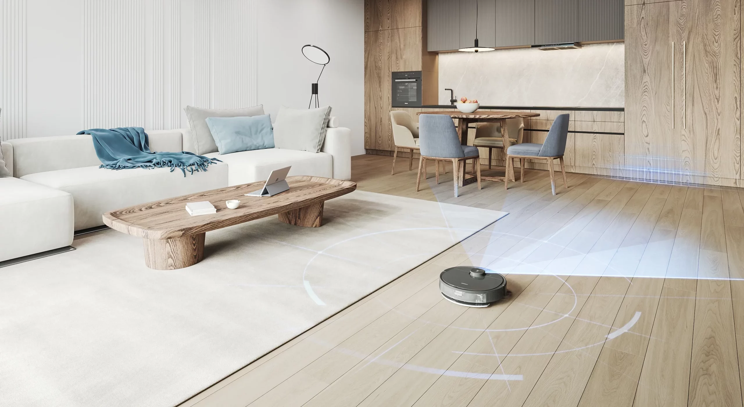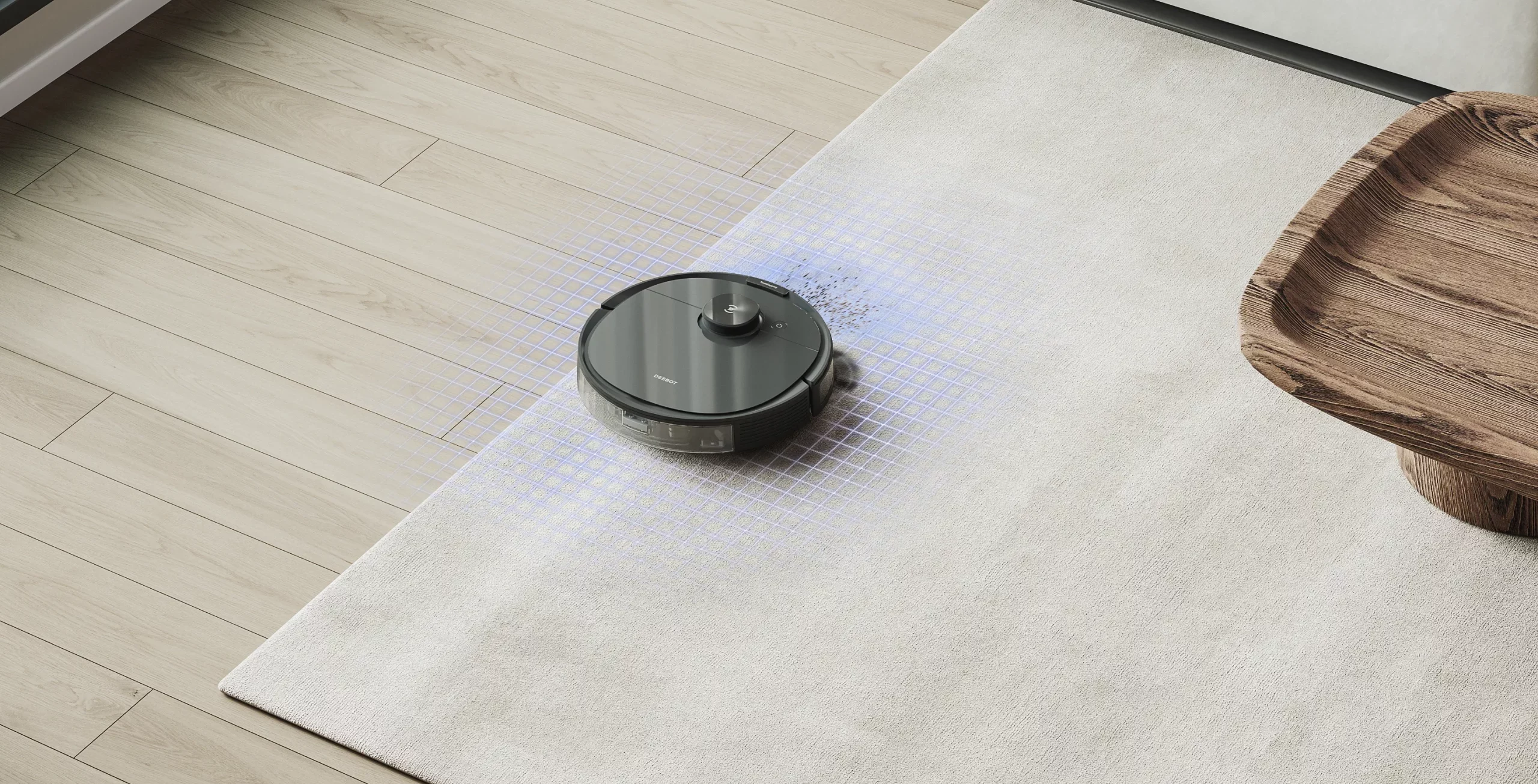 - Cảm biến nhận diện thảm: Sử dụng cảm biến siêu âm, DEEBOT N10 có thể “nhìn thấy” và không leo lên thảm khi lau sàn, hoặc tự động tăng lực hút cực đại khi chuyên quét hút trên thảm.