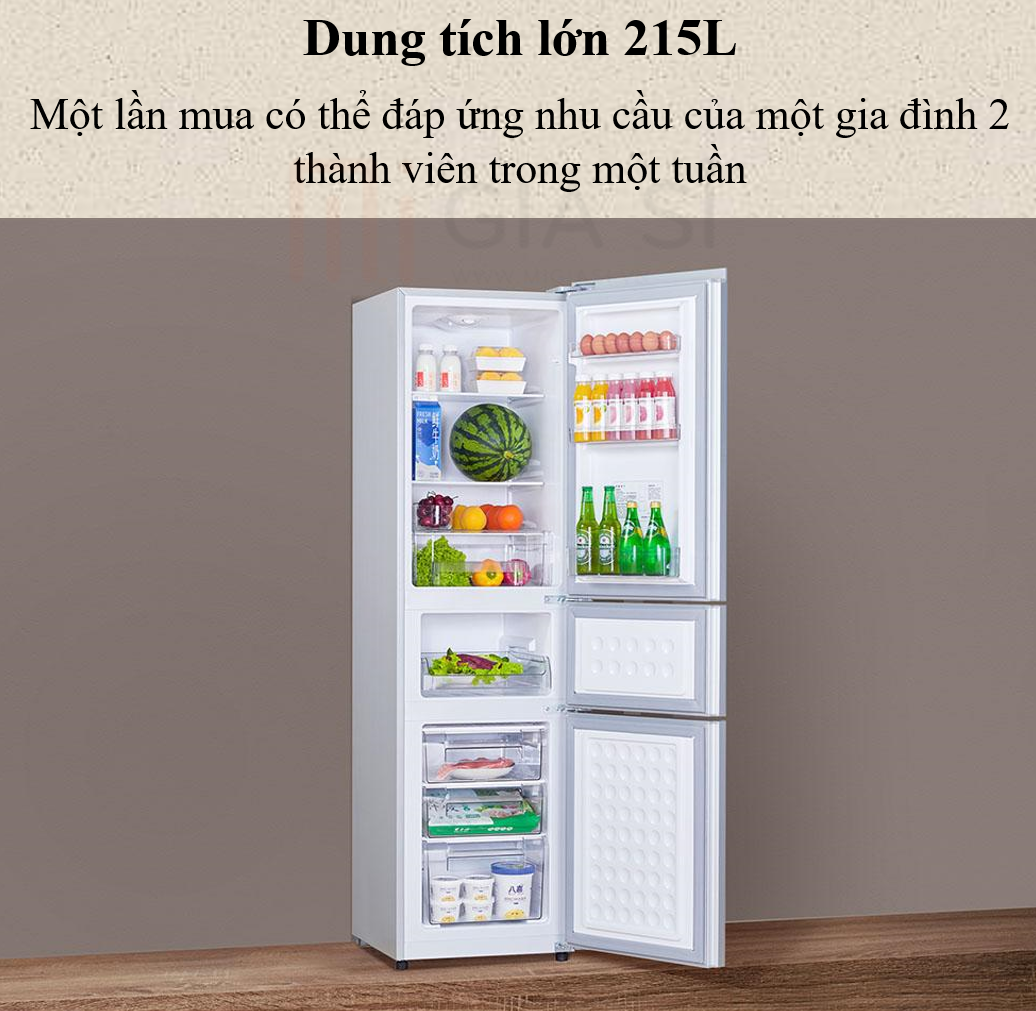 Tủ lạnh Xiaomi 215L phù hợp cho gia đình gồm 3 – 5 thành viên. Bạn có thể thoải mái chứa thực phẩm trong các ngăn của tủ.
