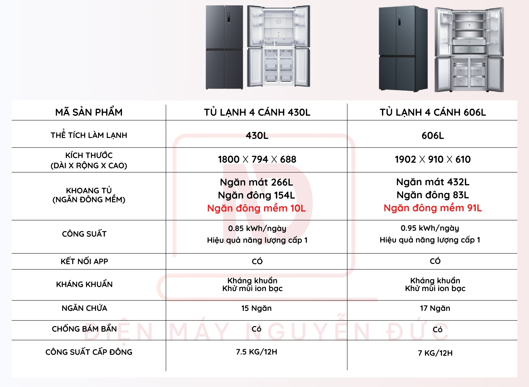 – Ngăn đông mềm: 91L (Có thể làm ngăn đông hoặc ngăn mát tùy biến)