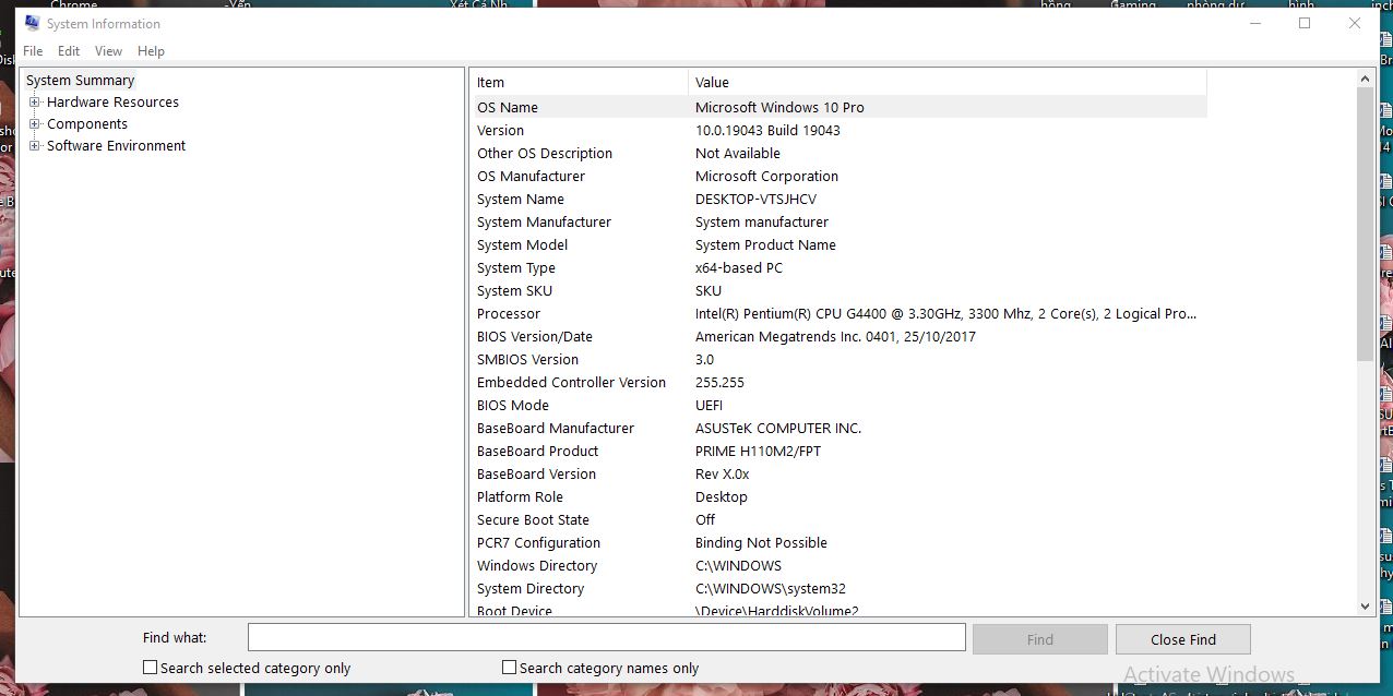 2. Kiểm tra cấu hình bằng lệnh msinfo32